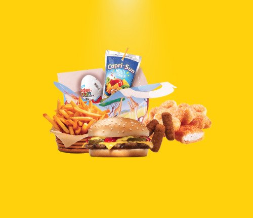 Menu enfant : burger cheese, Capri Sun et surprise.