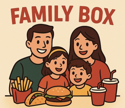 Box familiale avec boissons et frites.
